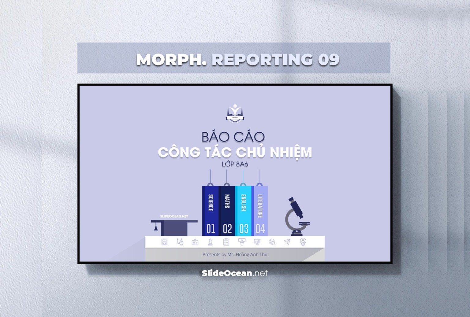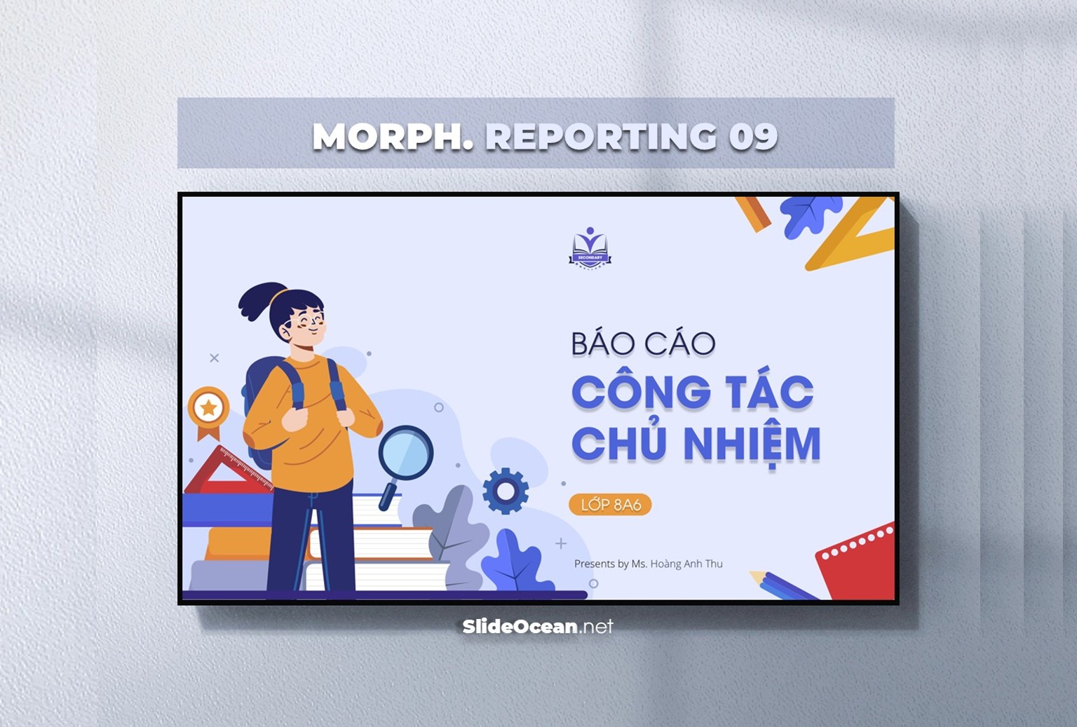 • SlideOcean mang đến cho bạn Bộ PowerPoint Báo cáo 10 nhóm nội dung, được thiết kế bài bản theo đúng yêu cầu thực tế của giáo viên từ cấp 1 đến cấp 3.