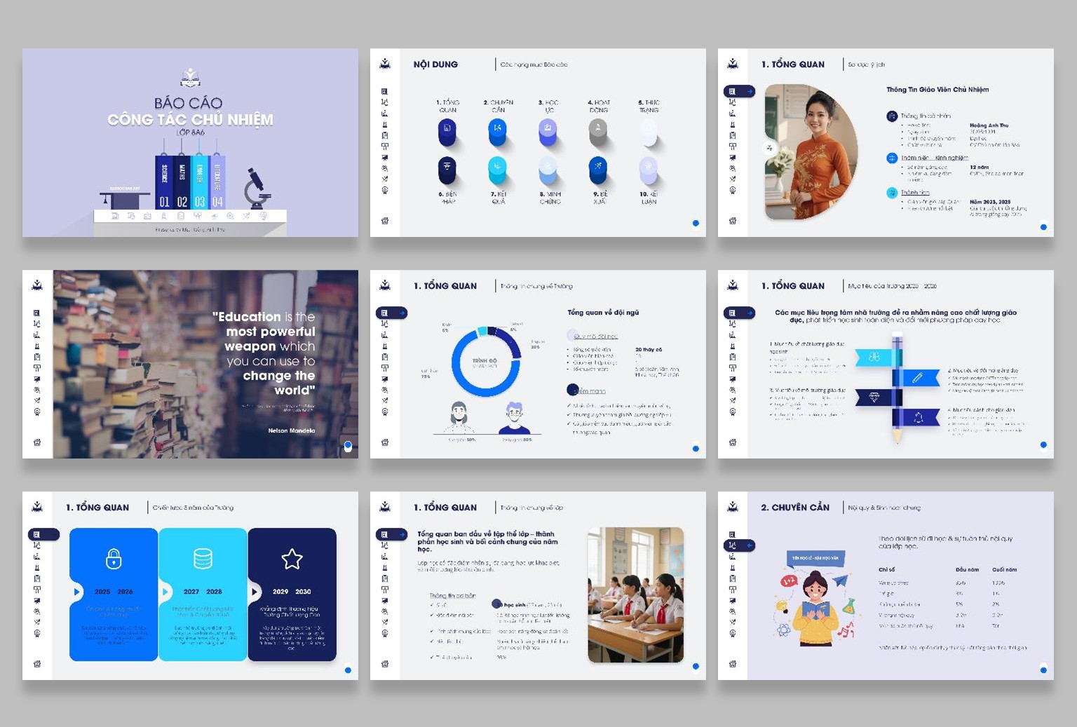 • 1. Tổng quan – Thông tin GV Chủ nhiệm, Trường, Mục tiêu, Chiến lược của Trường, TT Chung về lớp