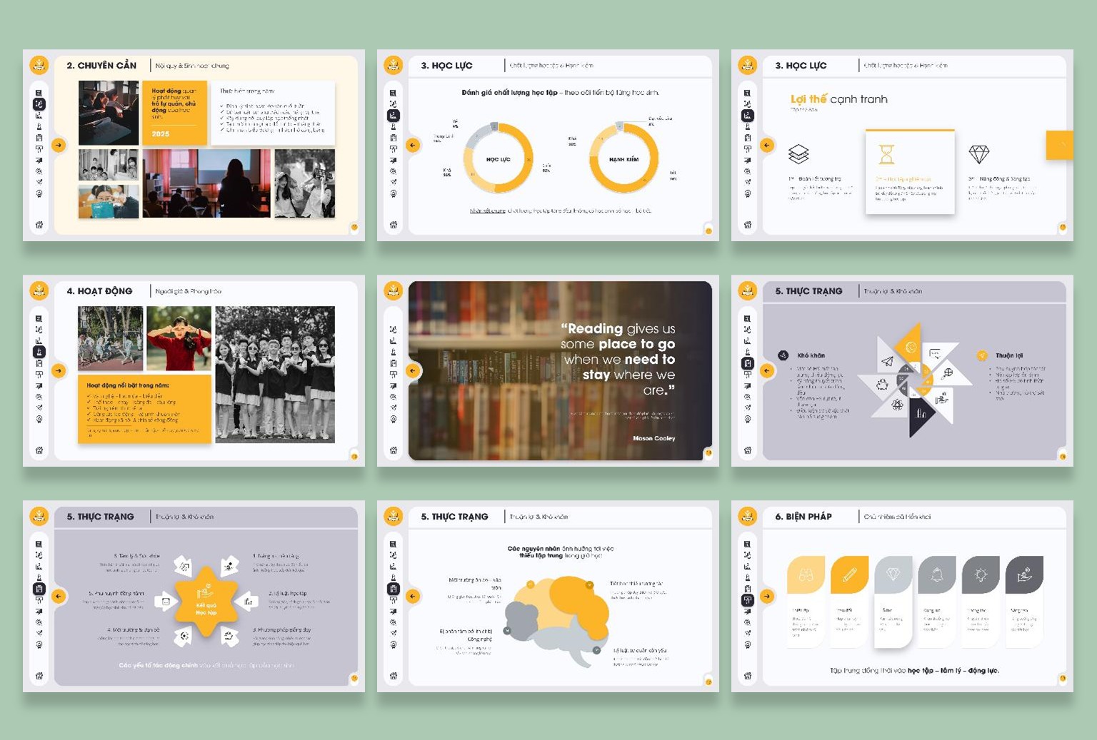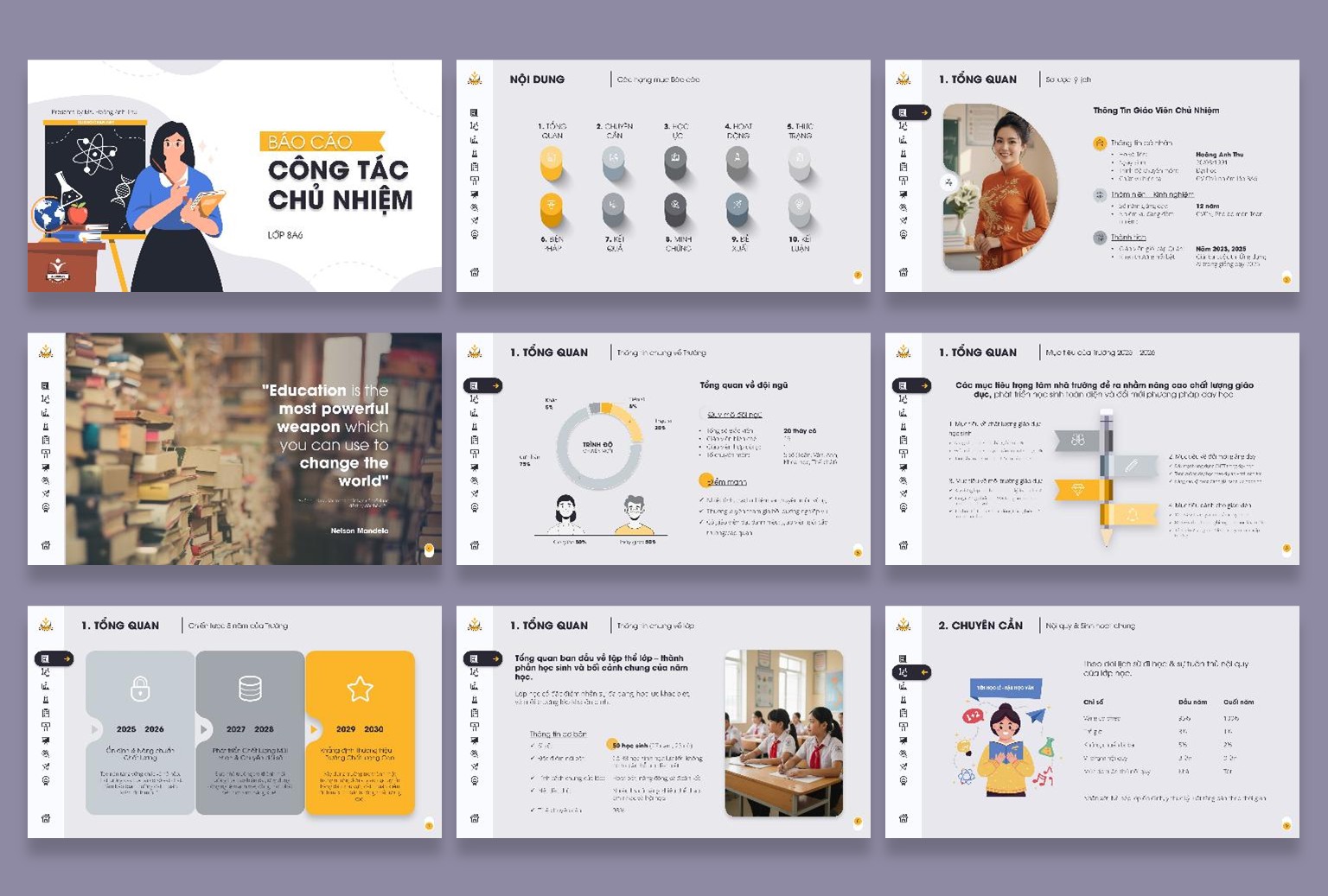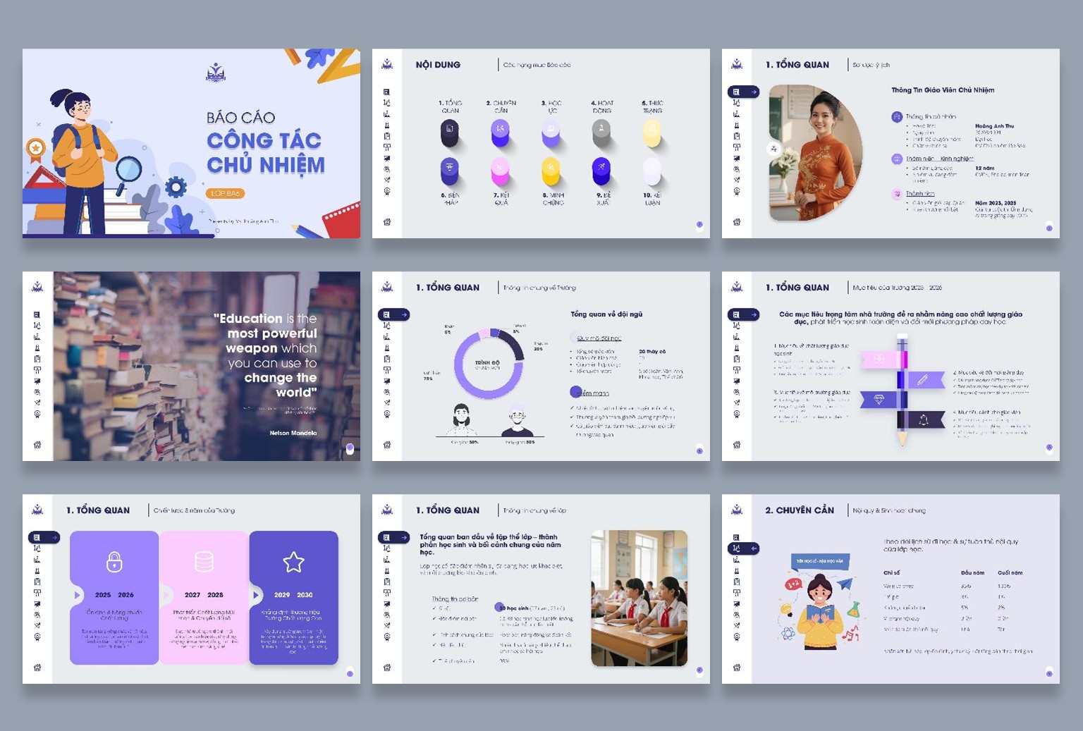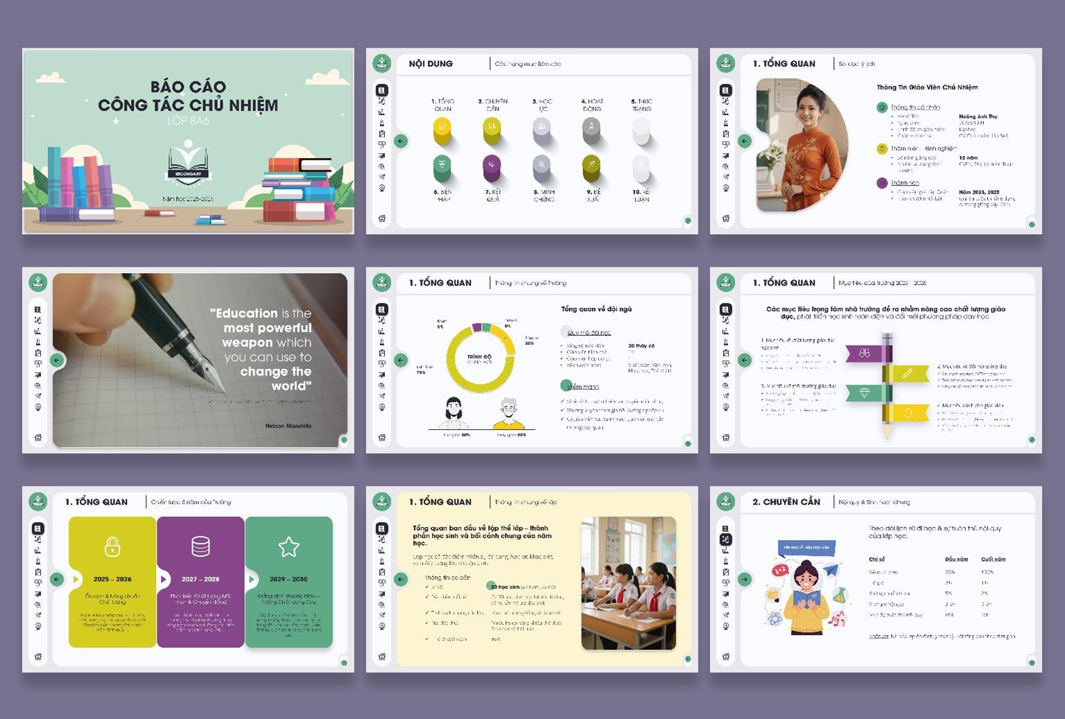 Tổng cộng 34 slides kèm 16 Cover Slides đi kèm, được thiết kế mạch lạc, logic, dễ trình bày trong hội đồng, họp tổ chuyên môn hoặc khi thi giáo viên dạy giỏi.
