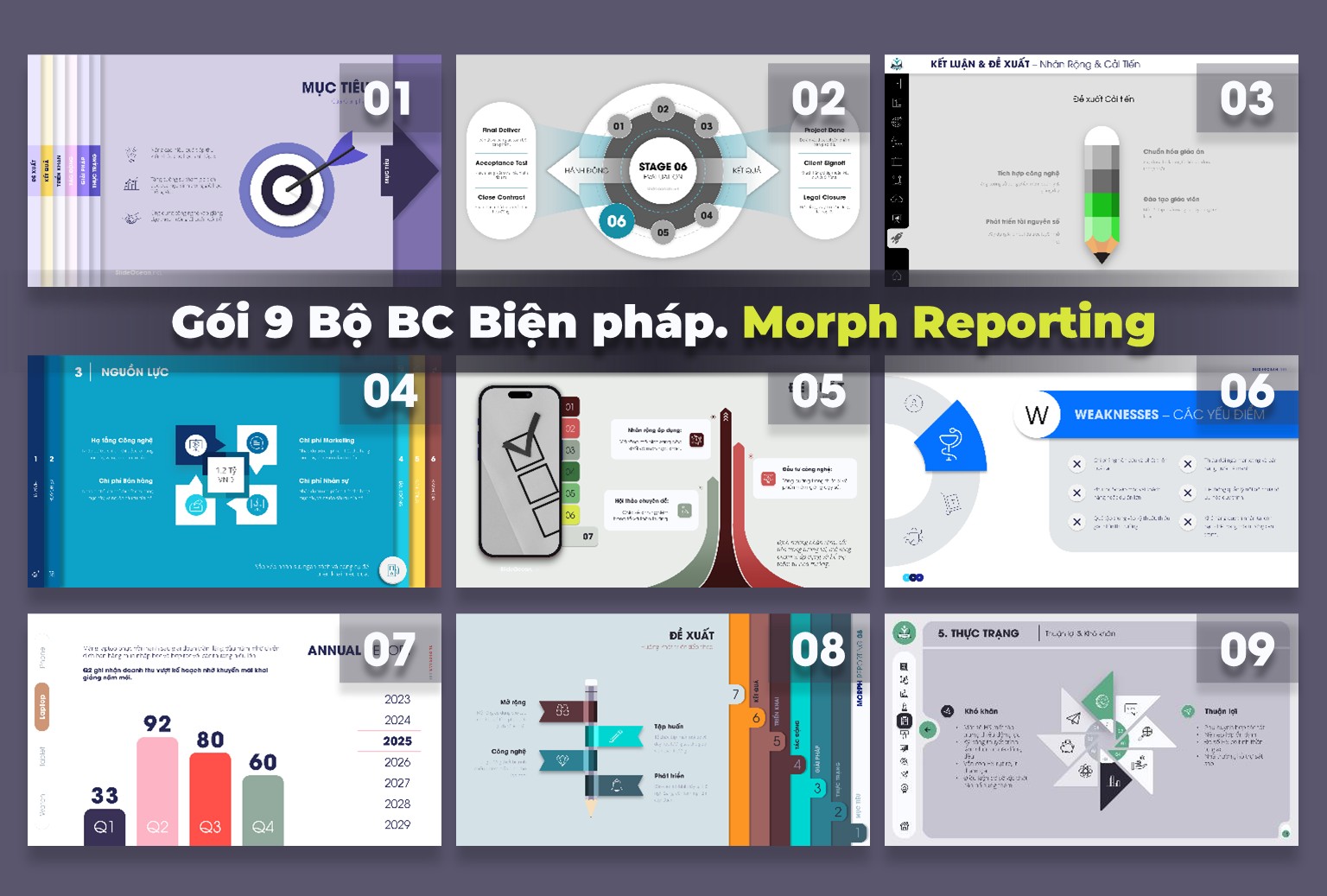 *** Lưu ý: Morph transition là 1 kỹ thuật cao cấp (chỉ có từ bản Microsoft Office 2019 trở về đây), và để edit và sử dụng được người dùng cần hiểu kĩ thuật này và phải thực sự tỉ mỉ để có hiệu ứng tốt nhất.