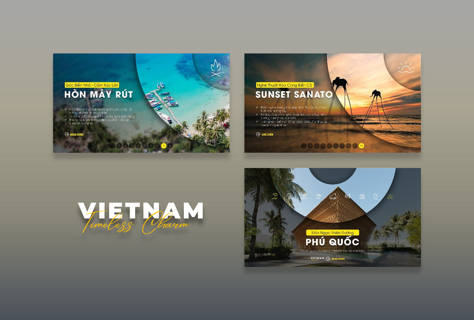 10 điểm đến nổi bật của Phú Quốc (mỗi slide kèm slogan ngắn + 3 bullet facts).