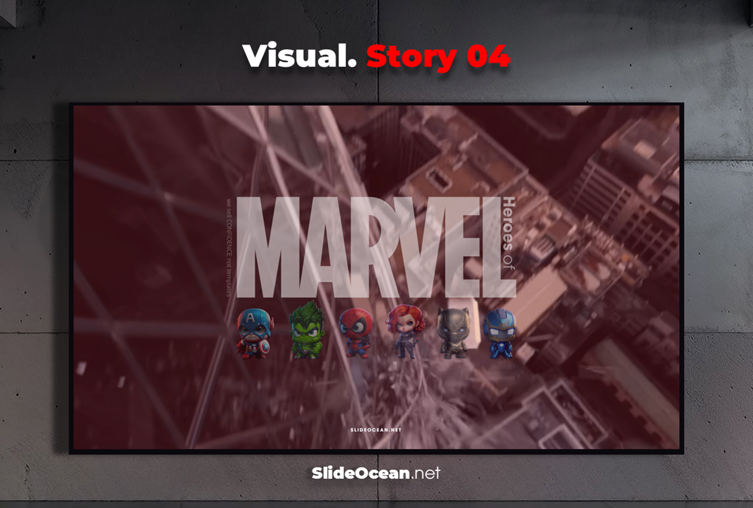 Lấy cảm hứng từ vũ trụ anh hùng Marvel, bộ Visual Story 04 – Heroes of Marvel mang đến phong cách trình bày mạnh mẽ, kịch tính và đậm chất điện ảnh. Mỗi slide như một cảnh phim – nơi hình ảnh, chữ, và hiệu ứng hòa quyện để kể câu chuyện thương hiệu hoặc dự án của bạn một cách ấn tượng và cảm xúc.