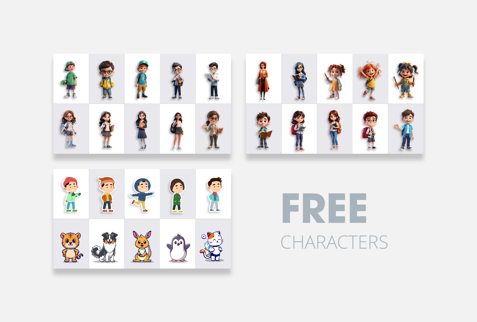 6 slides nhân vật: chuyển cảnh morph transition mượt mà, trang này bạn có thể sử dụng cho các chương trong 1 môn học, các thành viên dự án, lộ trình phát triển, mỗi slide sẽ có 1 ảnh nền để tạo hiệu ứng visual riêng.